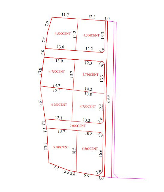 Residential plots for sale in manakody, Land area starts from 4.50cent and price per cent is 3.80lacs